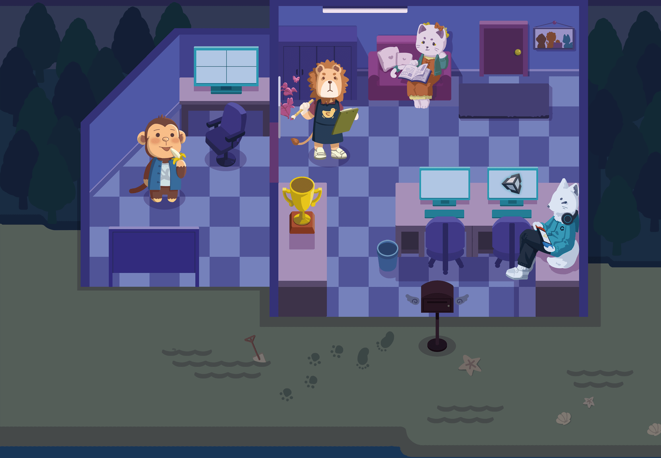 对游戏开发的热爱和追求,使我们相聚于此。涉及计算机图形学的学习,我们使用物理模拟引擎Unity开发我们所追求的世界,一个故事,一个角色,在我们的世界里改变现实,创造新的可能,我们参与,我们改变,我们创造...